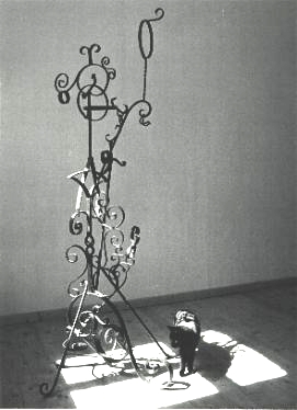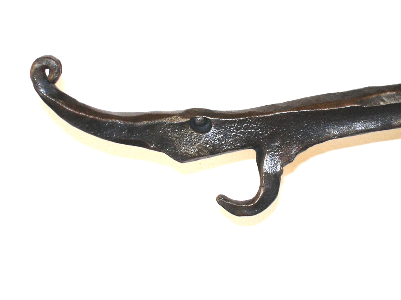 Aus Vierkantstangen und Flachstahl werden Köpfe geschmiedet. Kringelwidder und Rüsselhaie dienen dann als Kleiderhacken. Die Stangen und Bänder werden dann phantasievoll miteinander verschlungen.